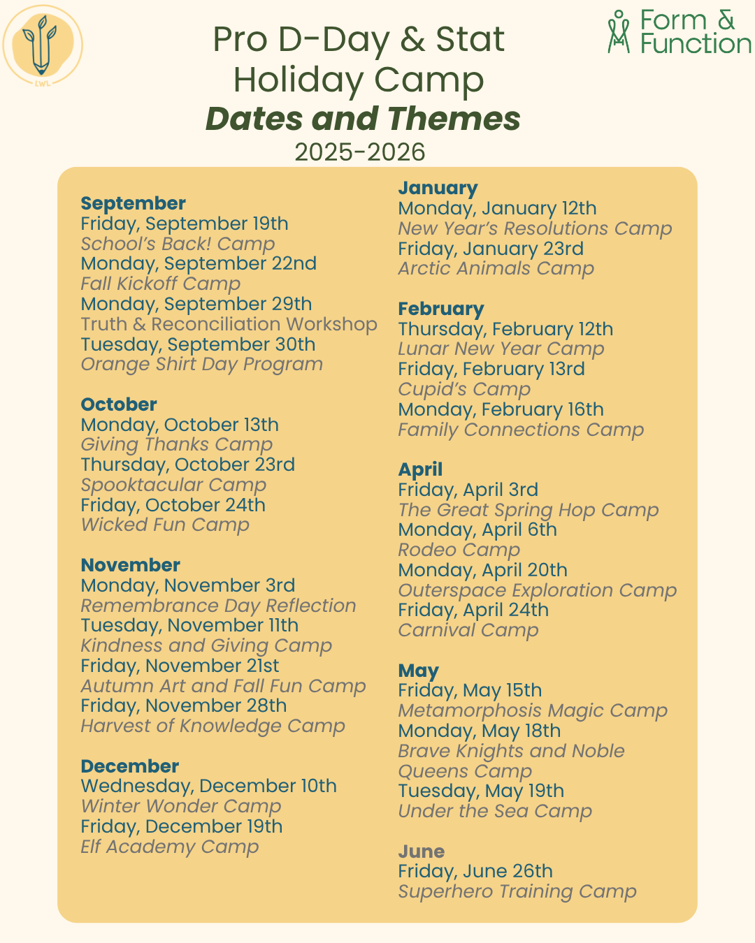 ⭐️ We recommend making a reservation at least 48 hours in advance to secure your spot! Children can join our multi-day camps or attend for a single day.