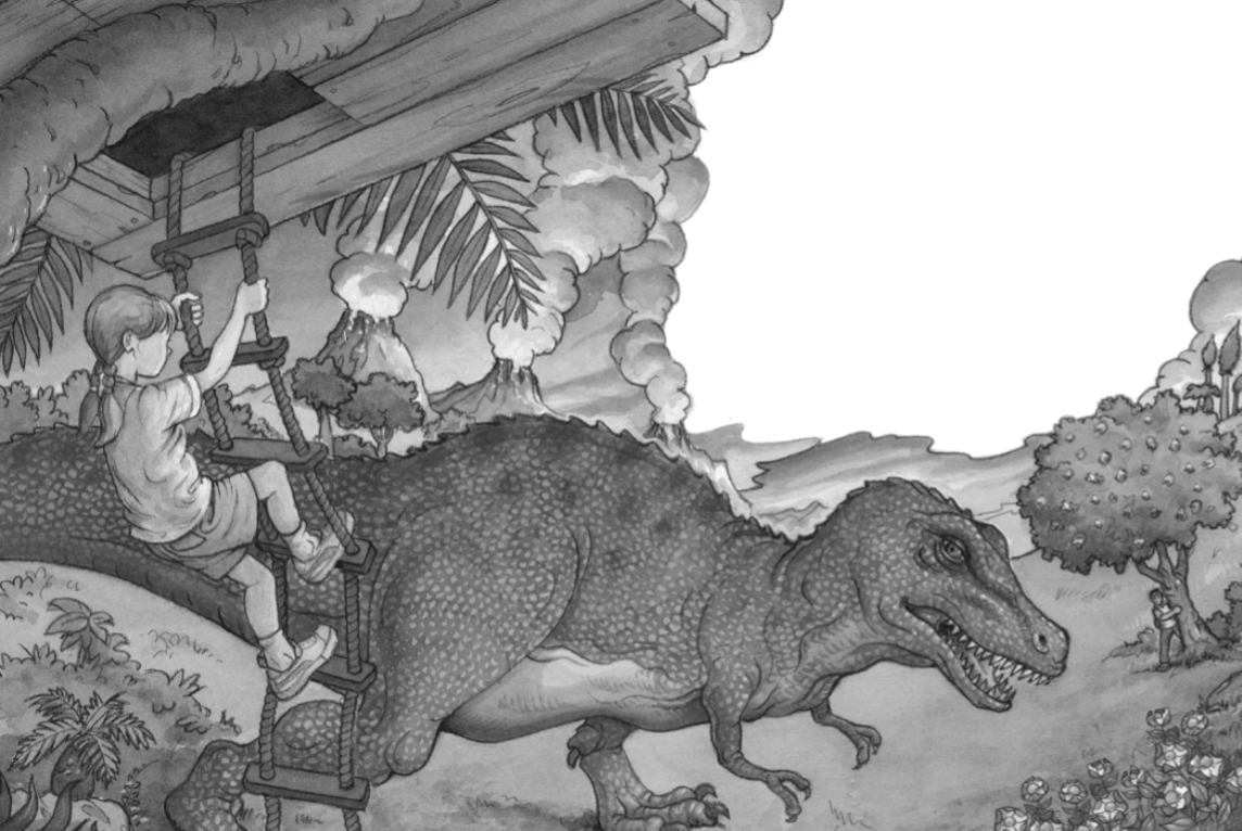 Jack and Annie narrowly escape a T. rex with the help of a Pteranodon and wonder about the mysterious “M” before planning their next adventure.