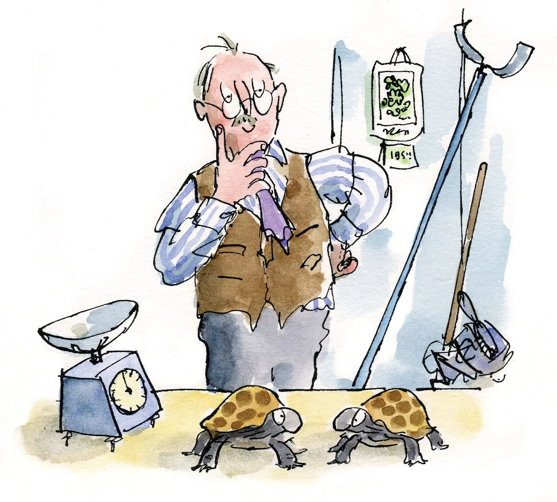 Mr. Hoppy, hoping to win Mrs. Silver’s heart, tells her a secret magic spell to make her beloved tortoise, Alfie, grow bigger.