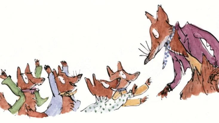 A clever fox outwits three farmers by stealing food through underground tunnels to feed his family and friends.
