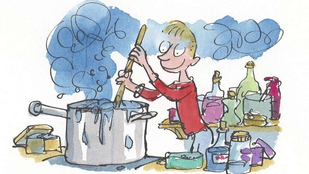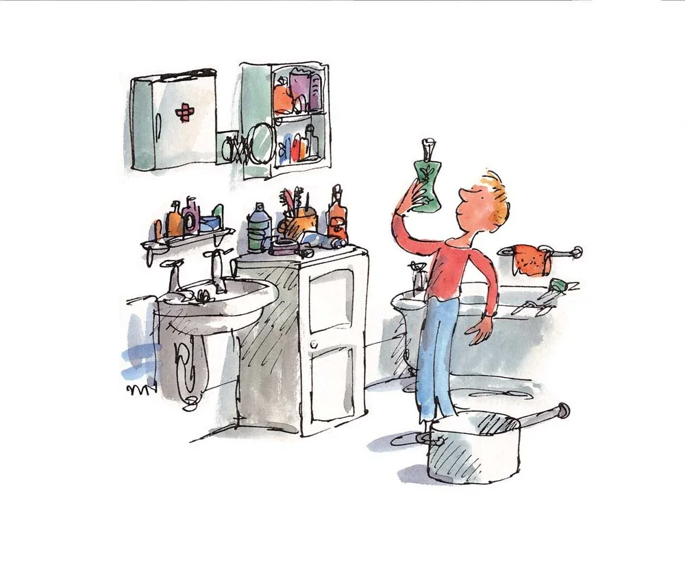 George mixes a strange medicine from random household items, and when Grandma drinks it, she grows enormously tall, leaving her and George’s parents amazed.