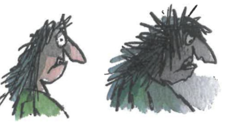 Mr. and Mrs. Twit are a filthy, spiteful pair who amuse themselves by playing nasty pranks on each other, from hiding glass eyes and frogs to worms in food and tricks about shrinking, until Mr. Twit straps Mrs. Twit to balloons and sends her soaring into the sky.