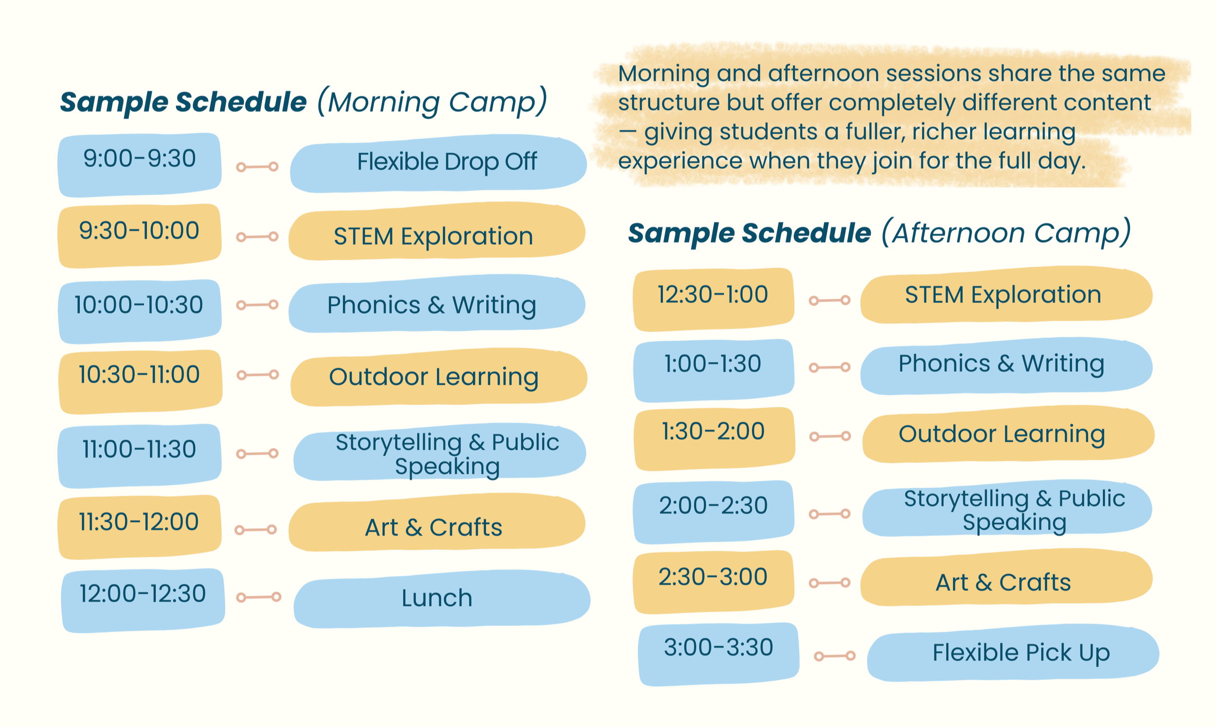 By blending core academics with hands-on STEM exploration, creative arts, and outdoor movement, our camp offers a refreshing daily rhythm. We ensure children continue to grow academically and socially, turning their summer break into a purposeful season of sunshine and skill-building.