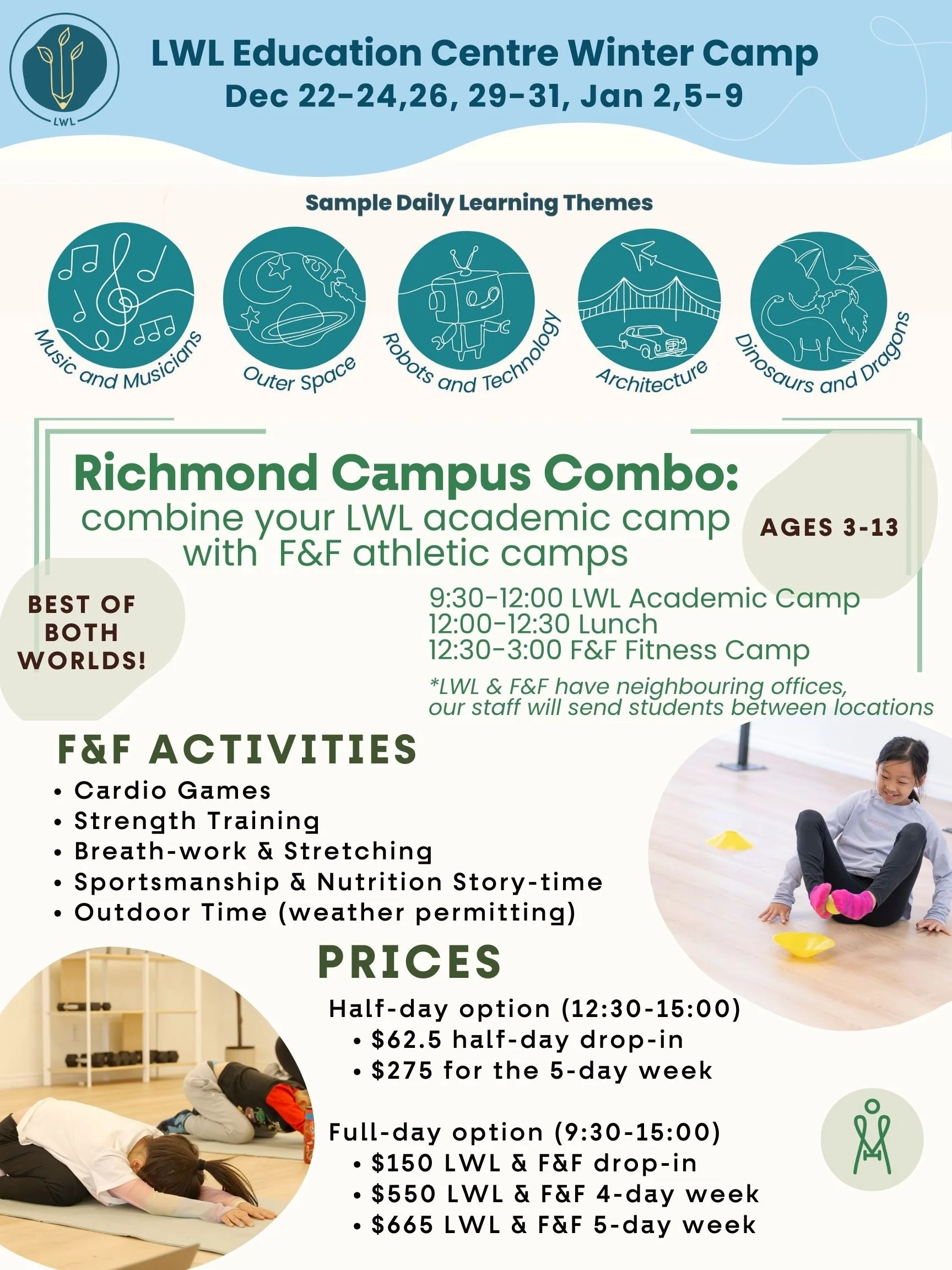 *LWL Richmond and F&F Richmond are neighbouring units, staff will send kids between camps if they register for both